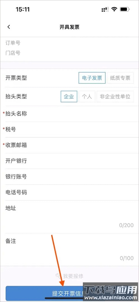 3、填写发票抬头、税号等相关信息,提交后即可完成电子发票申请。