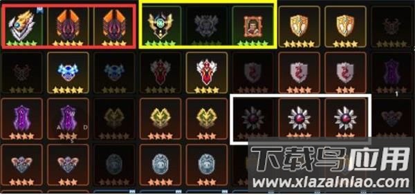 到游戏后期,盾牌选择通常集中在第一行,例如红框内的镜子盾与牛头人盾;许多资深玩家也会选择黄框盾牌,虽然商店可用金币购买,但对新手而言消耗过大,不建议早期换取。