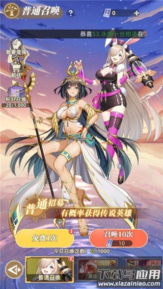 3、使用召唤券免费招募角色,有机会获得传说品质英雄;