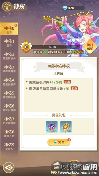 1、玩家达成神佑0后可领取突破礼包奖励;