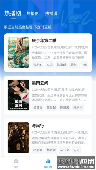 4、若不知看什么,可进入排行榜查看热播剧、电影及动漫榜单。