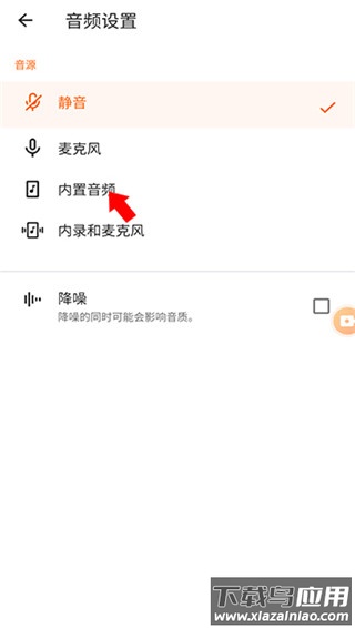 3、最后选择内置音频选项,即可在录屏时同步录制系统内部声音。