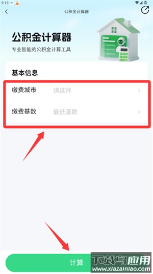 4、在计算页面选择参保城市并填写缴费基数,点击计算即可获得对应结果。
