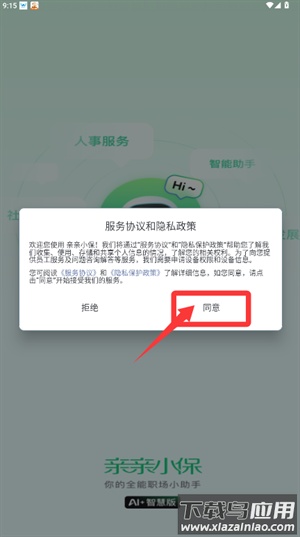 1、打开应用后仔细阅读服务协议与隐私政策,确认后点击同意进入;