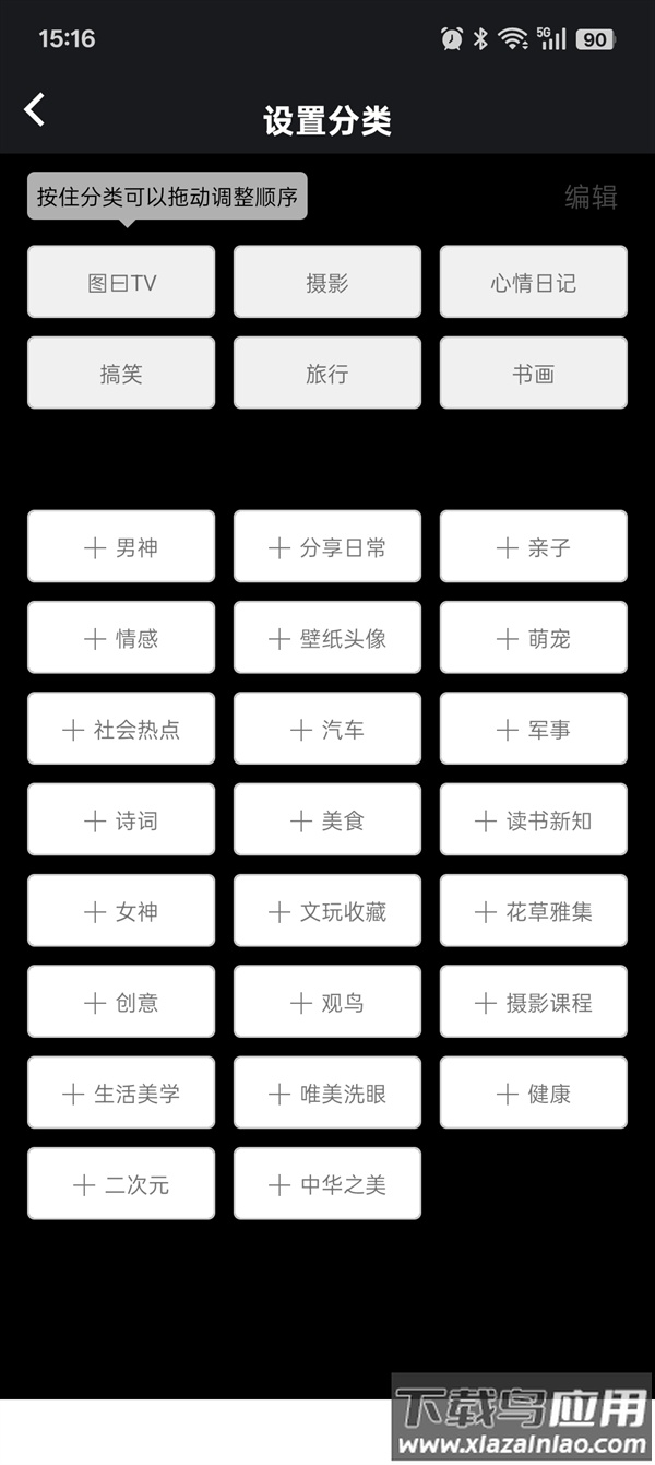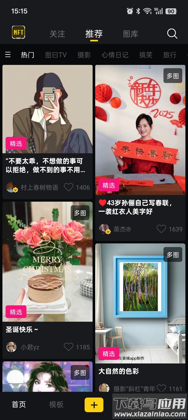 1、启动应用后,可见图库、摄影、旅行、搞笑等多个功能分区;