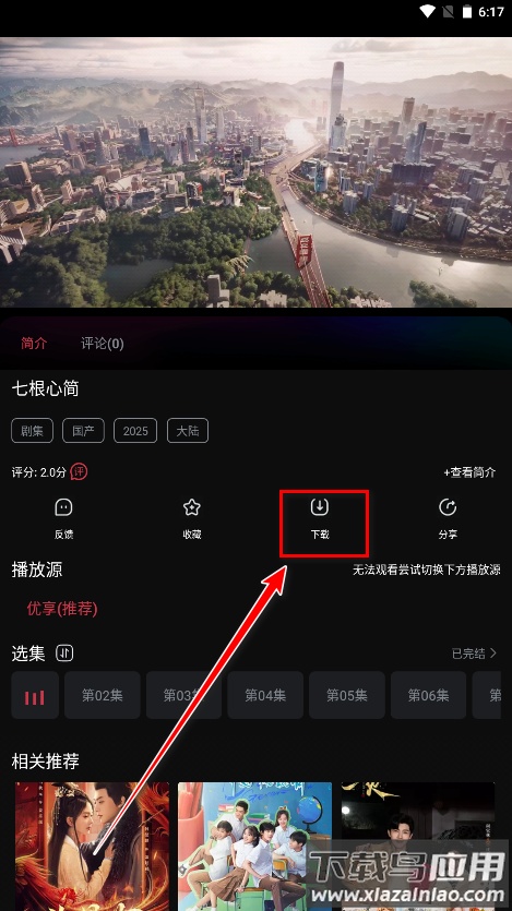2、进入播放页面后,点击下载按钮。
