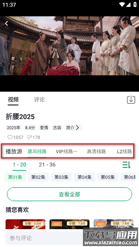 2. 若播放出现卡顿,可点击屏幕任意位置切换播放线路。