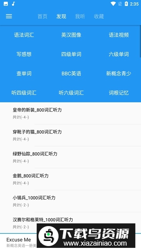 2.新概念系列资源完整,提供新概念英语全四册、新概念词汇及新概念青少版内容;