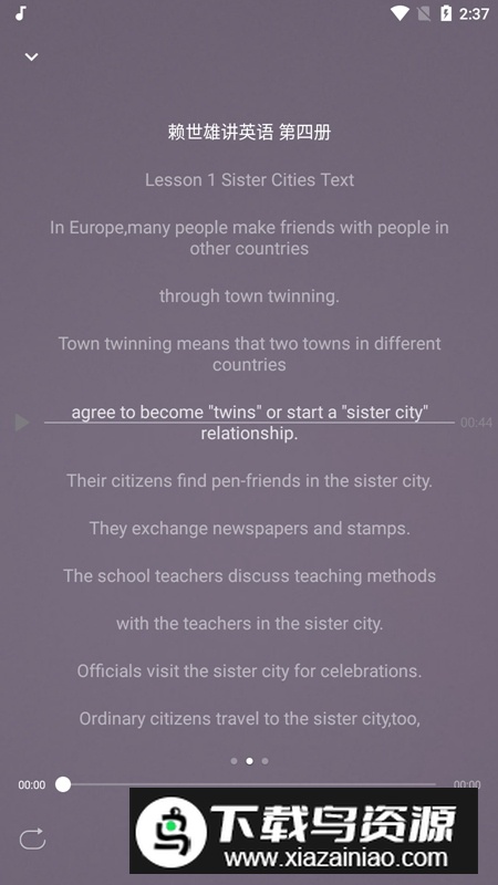 2.英语听力功能支持课文、翻译与单词同步显示,听力播放时可对照课文学习;