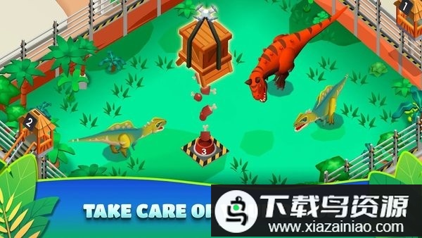 2、收集并展示各式各样的恐龙,让更多游客有机会观赏它们,同时你需要悉心照料每一只恐龙;