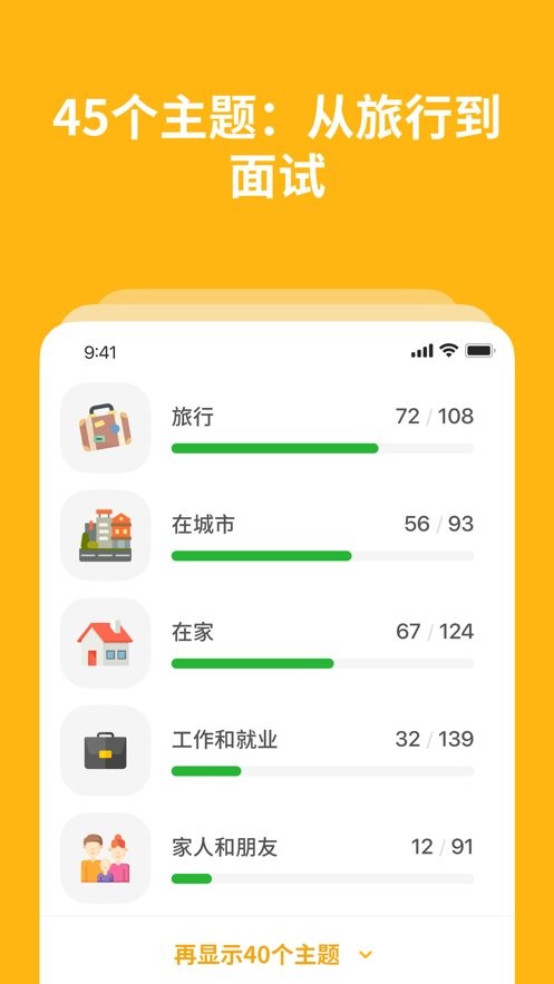 3. 这款应用对初级学习者与进阶使用者均有帮助;我们为不同难度级别准备了超过三十八个主题词集,这些内容均根据用户需求精心编排。