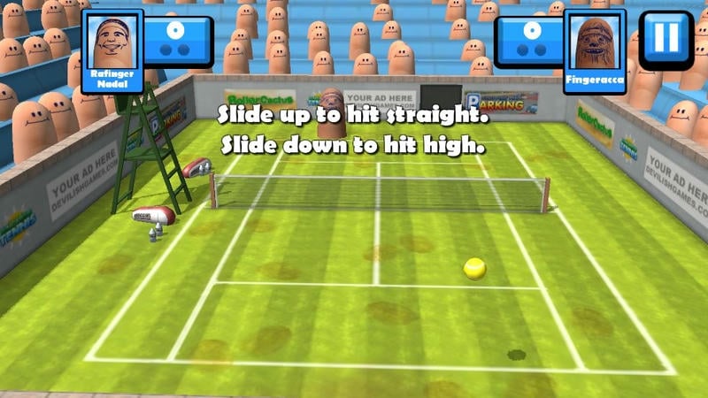 这款网球手游以独特的魔性画风带来新鲜体验,游戏将手指设计为赛场角色展开趣味对决。操作上手轻松简单,但想要实现精准控制仍需反复练习,流畅的节奏与巧妙的机制等待玩家逐步掌握。