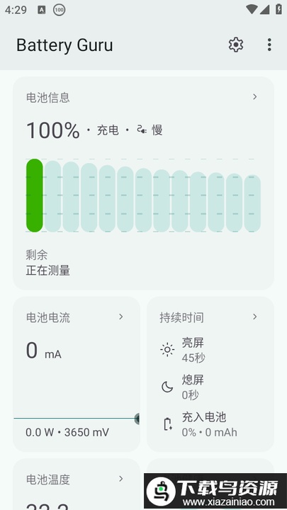 启动batteryguru后,界面会直观显示手机实时放电统计、电池健康状况、当前温度以及后台应用的耗电详情。在放电状态下,可查看手机已使用的总时长;在充电状态下,则能了解充满电所需的剩余时间。用户可自定义电池温度保护与充电上限,一旦出现异常,应用将自动弹出提醒。软件还提供了丰富的电池保养建议,方便用户随时查阅。