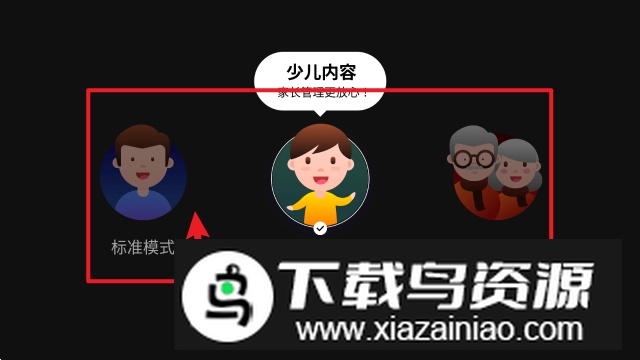 3. 在模式选择页中,找到并选中少儿模式选项;