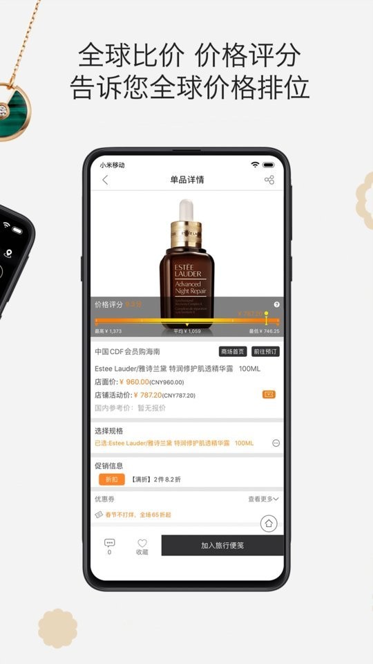 3、全球价格查询:支持超过三百个时尚品牌、二十余万件商品的全球价格一键查询;涵盖爱马仕、卡地亚、古驰、路易威登、SK-II、苹果等各类知名品牌。
