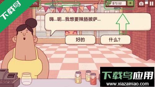 界面左上角的太阳图标代表营业时间,到达晚上九点即结束当日经营;旁边的进度条反映顾客耐心值,若低于一半则可能失去小费;右侧显示当前拥有的金额。