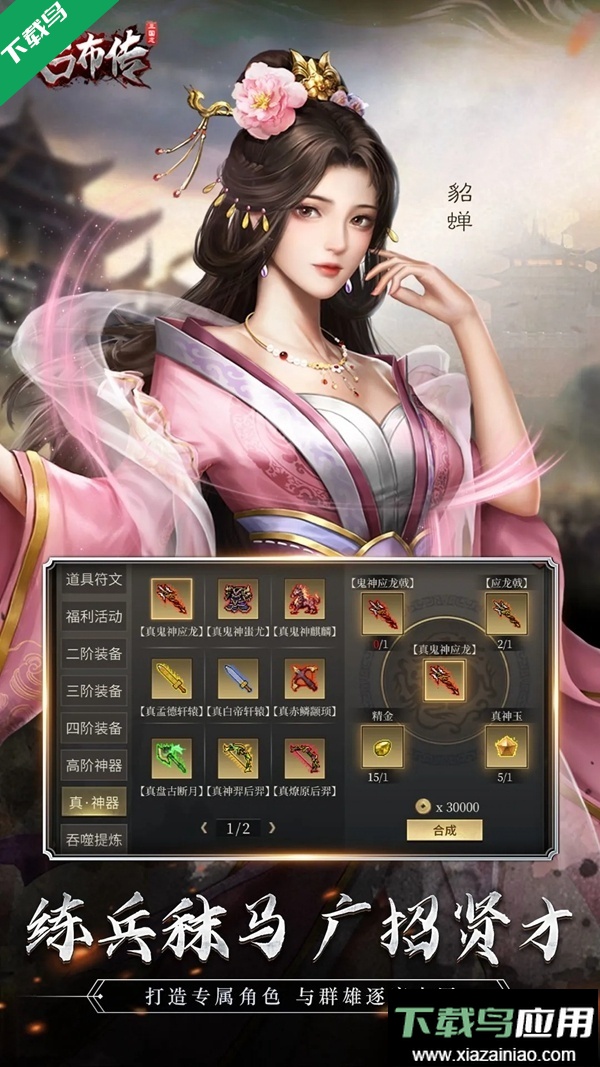2、貂蝉:礼包所赠“轻身”特技使其地形消耗恒为1,特定皮肤附带魅惑与眩晕神技,关键时刻可控制强力敌军。装备推荐北斗七星剑(法术必中)、任意防具及增加移动的马匹或风神盾。