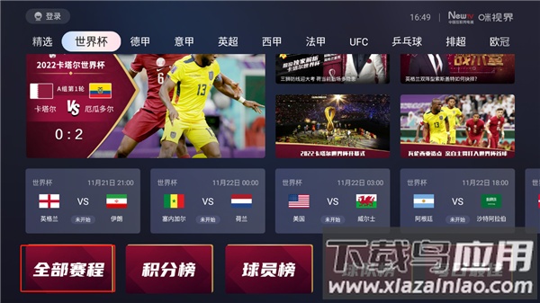 2.点击“全部赛程”可查看所有比赛,支持直播回放;