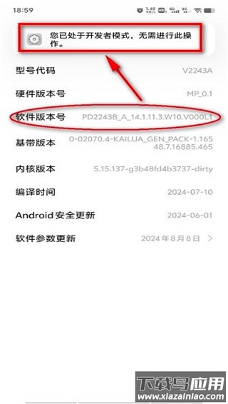 3、连续点击“系统版本号”多次,直至屏幕提示已成功开启开发者模式。