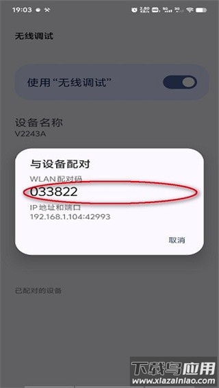 10、此时手机通知栏会弹出服务对话框,将上一步获取的配对码准确输入其中。