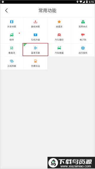 3. 页面会列出多种常用功能,例如共享地图、离线地图、收藏夹和常用地点等,请找到其中的“蓝牙连接”选项。