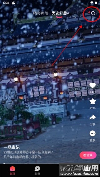 1、进入首页后上下滑动可切换视频;点击右上角搜索图标,即可查找短剧;