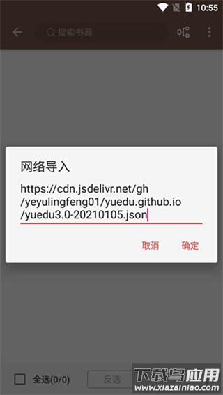 3. 将书源链接复制粘贴到软件输入框中,点击确定;