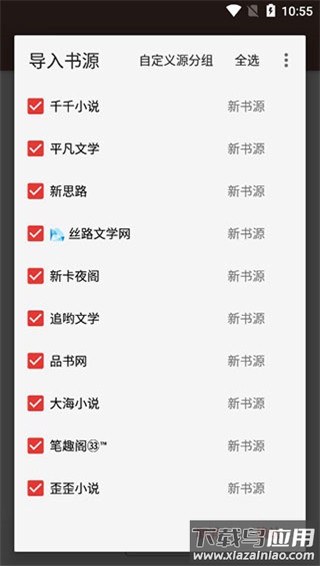 4. 界面会显示所有可导入的书源,用户可自行挑选并导入;