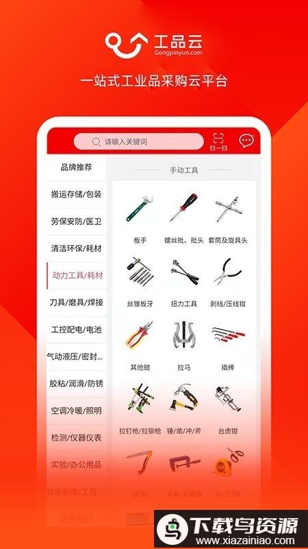 工品云电商平台专注于工业用品采购领域,平台内产品与品牌资源十分丰富,分类结构清晰细致,方便用户快速查找所需商品;用户既可按分类浏览,也能直接使用关键词搜索,是日常采购的实用工具,欢迎有需要的用户在本站下载使用。