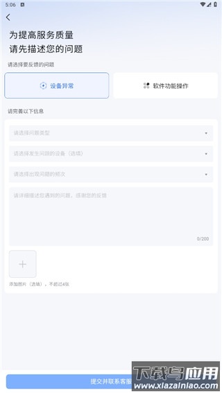 3. 根据咨询内容,选择“设备异常”或“软件功能操作”等分类;
