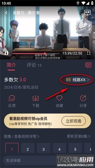2. 找到想要观看的动漫剧集,点击进入播放页面,在播放器中可看到线路切换选项;