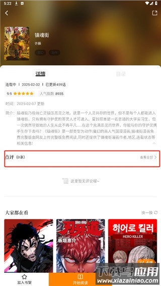 1. 打开漫画的详情介绍页面,点击“点评”入口;
