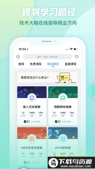 该软件旨在引导初学者从零开始,循序渐进地迈向编程成功之路;它拥有独特的课程体系,精选业内资深开发者的教学内容。你可以在这里找到大量高清视频课程,获取丰富的学习资料;同时,软件还能模拟真实的项目开发流程,让你获得实践体验。其内置的一键提问、作业批改及快速搜索功能,结合名师一对一答疑服务,让你享受到高效的学习支持。