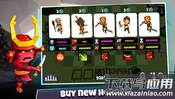 1、游戏画风卡通精致,采用类似国际象棋的走位机制,可供收集的英雄种类丰富。