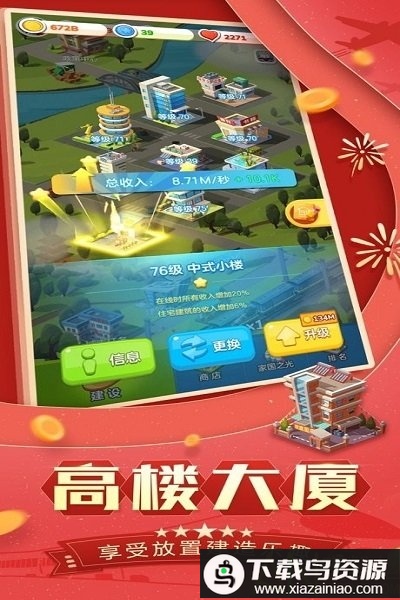 1、建造高楼大厦,体验放置与经营的轻松乐趣;
