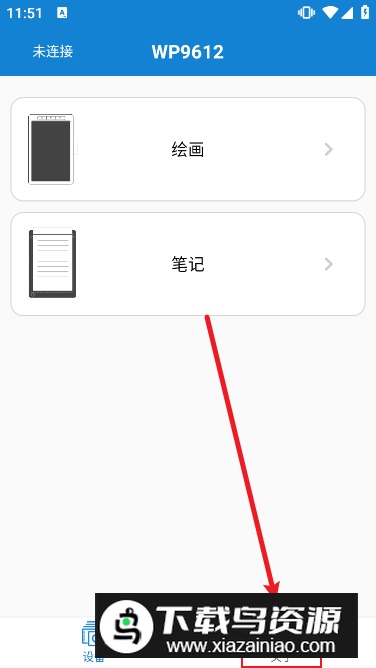 第二步:选择界面右下角的关于选项,跳转至下一页面;