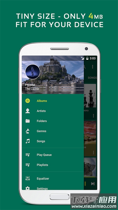 2、按照专辑、艺人、文件夹及音乐风格分类管理并播放歌曲