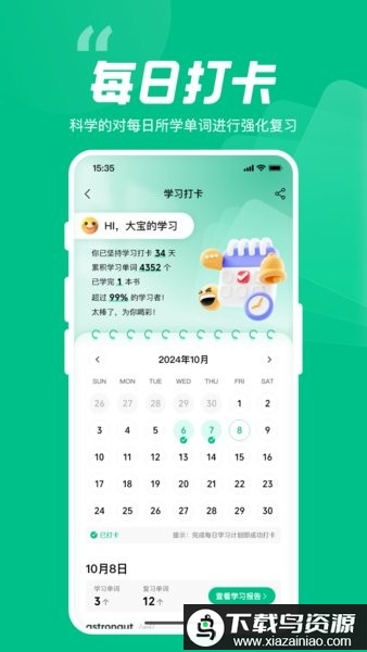 这是一款旨在提升英语词汇记忆效率的应用,它依托个性化的学习规划和科学的复习机制,协助用户克服记忆难题,轻松积累词汇。无论你是刚刚起步的新手,还是渴望进一步提升的学子,呱唧英语都能提供贴合你自身节奏的学习方案,让掌握英语变得有趣而直接。