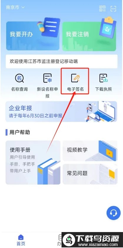 7. 在首页点击“电子签名”功能入口。