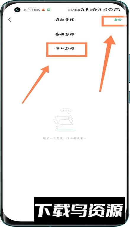4. 在文件选择界面中,点击右上角的备份选项,然后选择导入存档即可完成操作。