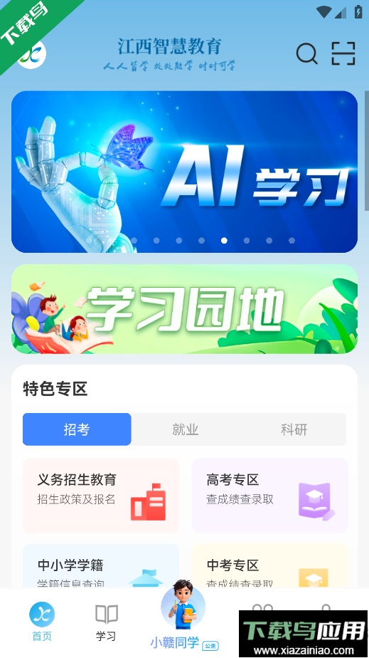 江西智慧教育是江西省教育厅推出的官方教育服务平台,该平台整合了在线学习工具与家校互动功能,提供无广告的免费学习环境,支持智能作业批改与个性化学习推荐,致力于让优质教育资源更加普及,推动本地教育质量持续提升,欢迎有需要的用户下载使用。
