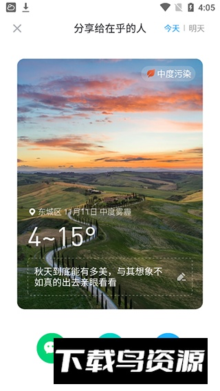 2、点击页面上方的分享按钮,可将天气信息以海报形式分享至QQ或微信;