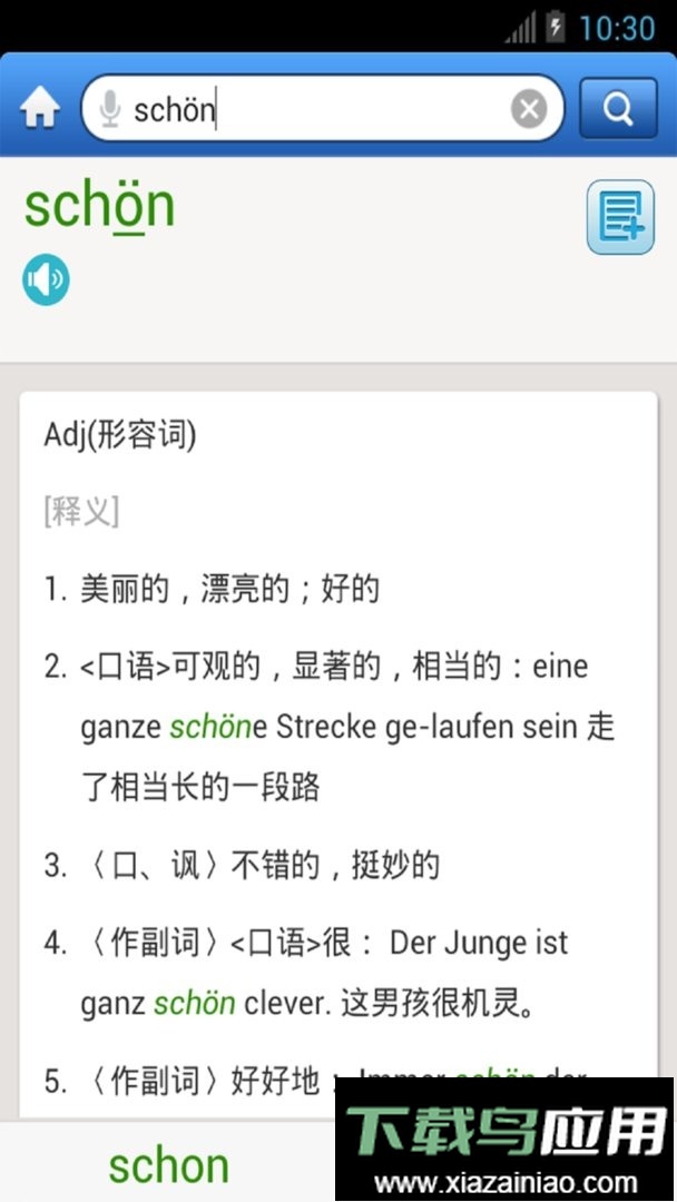 单词及例句均配有真人发音,让用户能够感受纯正德语语音,学习地道的口语表达。