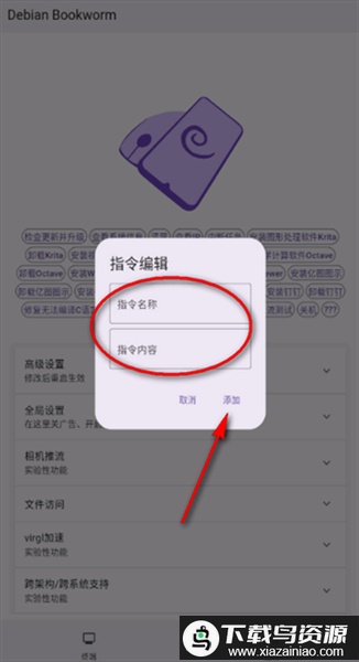 4. 等待安装过程,如需添加指令,点击添加按钮进行操作;
