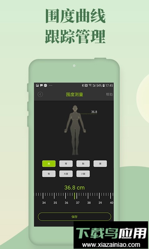 2、围度管理:通过智能围度尺便捷测量,实时记录并同步肩围、胸围、腰围、臀围等七项身体围度数据,助力塑造优美形体。