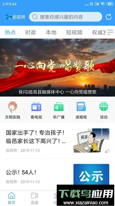 邑视界客户端是临邑县融媒体中心打造的官方移动互联网融媒体平台。它具备丰富的政务、服务与新闻资讯功能,用户可以通过它观看电视、收听广播,获取最快最新最全面的临邑本地信息。