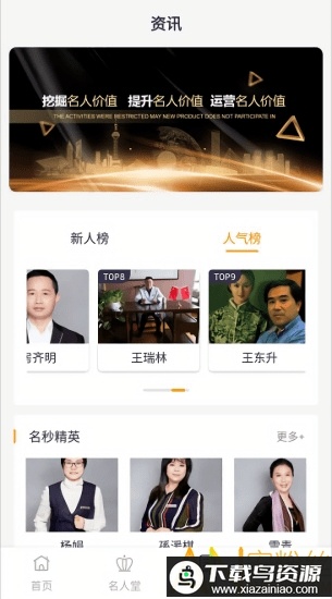 3、平台提供丰富的名人资讯参考,例如新人榜单与人气榜单,方便用户选择关注。