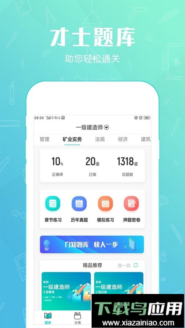3、才士题库:完整收录近五年历年真题与模拟题库,包含每日一练、考点章节练习及高频考点;题库拥有海量题目并配备精准解析;