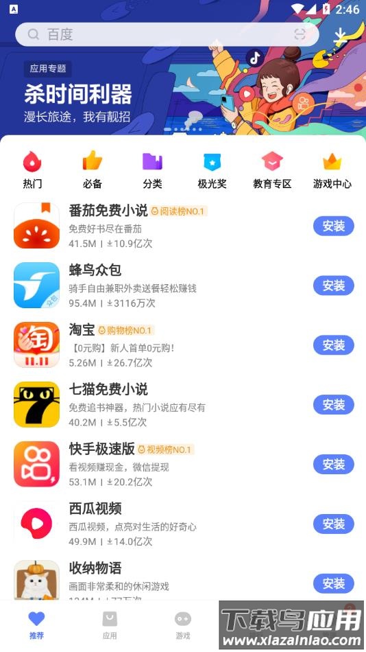 1、应用下载推荐、应用、游戏、排行多种方式寻找你最喜欢的app;