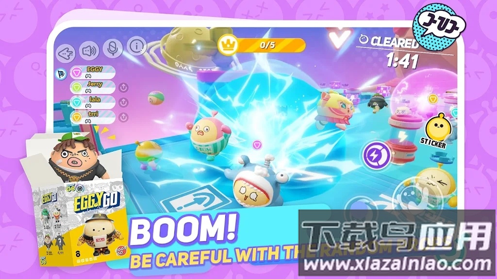 这是一款以潮玩形象为主题的休闲竞技游戏。你将扮演一只造型萌趣的蛋仔,加入这场派对式的闯关冒险。游戏旨在用轻松愉快的碰撞玩法,让玩家在欢声笑语中结识新的伙伴。